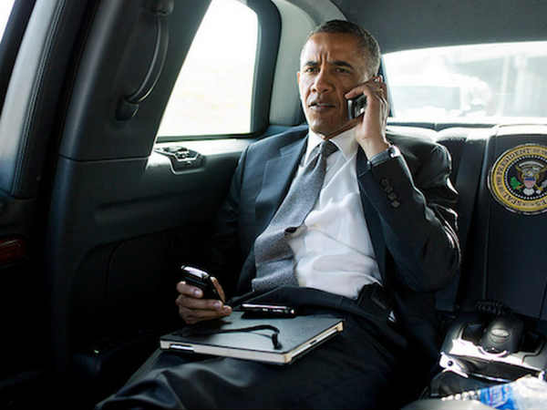 ఒబామా బ్లాక్ బెర్రీకి పెద్ద ఫ్యాన్ అని చెబుతారు. అందుకే ఎక్కువగా ఆయన దగ్గర బ్లాక్ బెర్రీ వస్తువులే ఉంటాయి. ఈ చిత్రం ఎయిర్ ఫోర్స్ దగ్గర తీసుకున్నది.ఆయన పక్కనే బ్లాక్ బెర్రీ కర్వ్ 8300 అలాగే 8900 ఉన్నాయి చూడండి.