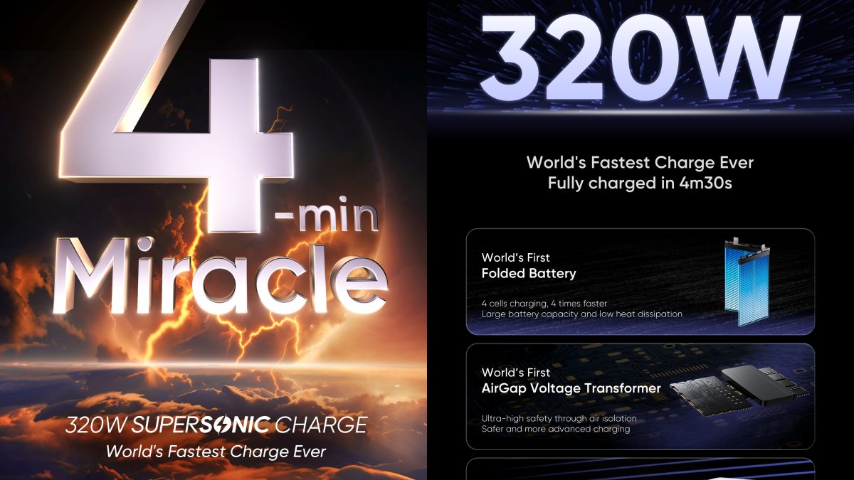 ప్రముఖ స్మార్ట్ఫోన్ల తయారీ సంస్థ రియల్మి తాజాగా సరికొత్త ఫాస్ట్ ఛార్జింగ్ టెక్నాలజీని ఆవిష్కరించింది. ఈ టెక్నాలజీ ద్వారా 5 నిమిషాల కంటే తక్కువ సమయంలో 100 శాతం ఛార్జింగ్ను పూర్తిచేయవచ్చని రియల్మి వెల్లడంచింది. చైనాలో నిర్వహించిన 828 Fan Fest లో 320W సూపర్సోనిక్ ఛార్జ్ టెక్నాలజీని (Realme 320w Super Sonic Charging Technology) ఆవిష్కరించింది. ఈ కార్యక్రమంలో ఫోల్డబుల్ బ్యాటరీ మరియు రియల్మి 13 సిరీస్ విడుదలను ధ్రువీకరించింది.