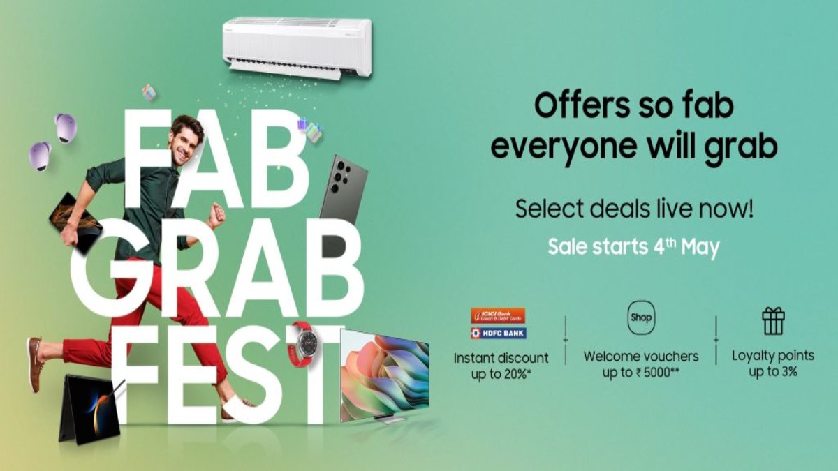 ఈ శాంసంగ్ Fab Grab Fest, 2023 , సేల్ మే 4 నుంచి వినియోగదారులకు అందుబాటులో ఉంటుంది.ఈ ఫెస్ట్ ఆఫర్లు Samsung.comలో అలాగే దేశవ్యాప్తంగా ఉన్న శాంసంగ్ ఎక్సక్లూసివ్ స్టోర్లలో అందుబాటులో ఉంటాయి.