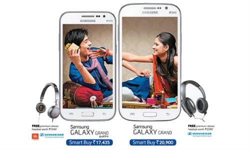 ఈ ఆఫర్లలో భాగంగా సెప్టంబర్ 14లోపు గెలాక్సీ గ్రాండ్ (జీటీ-ఐ9082), గ్రాండ్క్వాట్రో (జీటీ-ఐ8552) డివైజ్లను కొనుగోలు చేసిన వారికి సెన్హైసర్ హెడ్సెట్లను ఉచితంగా అందించనున్నారు. ఈ ఆఫర్ వ్యవధిలో గెలాక్సీ గ్రాండ్ను కొనుగోలు చేసిన వారు సెన్హైసర్ హెచ్డి 202 లేదా సెన్హైసర్ హెచ్డి 203 మోడల్ హెడ్సెట్ను ఉచితంగా పొందవచ్చు. వీటి ధర రూ.2,290 వరకు ఉంటుంది. మరో డివైజ్ గ్రాండ్ క్వాట్రోను ఆఫర్ కాలపరిమితిలోగా కొనుగోలు చేసిన వారికి సెన్హైసర్ పీఎక్స్-80 లేదా జేబీఎల టెంపో జేఓ3బి హెడ్సెట్ను ఉచితంగా అందించనున్నారు. వీటి విలువ రూ.1990 వరకు ఉంటుంది. ఆఫర్ పరిధిలో గెలాక్సీ కెమెరాను కొనుగోలు చేసిన వారికి కెమెరా బ్యాటరీ ఛార్జింగ్ కిట్ను ఉచితంగా అందించనున్నారు.