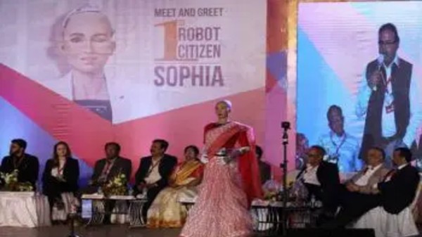 ప్రపంచంలోని మొట్టమొదటి హ్యూమనాయిడ్ రోబోట్ సోఫియా కోల్కతాలో టెక్నాలజీ ఆధారిత ఇంటరాక్టివ్ సెషన్లో పాల్గొనడానికి భారతదేశానికి చేరుకుంది. సిటీ ఆఫ్ జాయ్ వద్ద, AI తన ఎరుపు మరియు తెలుపు సాంప్రదాయ బెంగాలీ చీరలో అందరి హృదయాలను దొంగిలించగలిగింది.