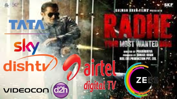 టాటా స్కై, డిష్ టివి,D2h ఆపరేటర్ ఛానెళ్లలో "రాధే" కొత్త సినిమా