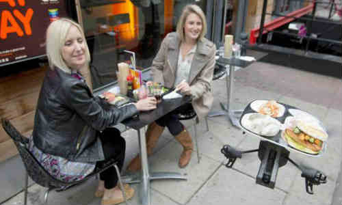 రెస్టారెంట్లో మీరు కూర్చున్న టేబుల్ వద్దకు ఎగురుకుంటూ వచ్చే ఫుడ్ ట్రేను లండన్లోని జపాన్ రెస్టారెంట్ చెయిన్ యో! సుషీ పరిచయం చేసింది.