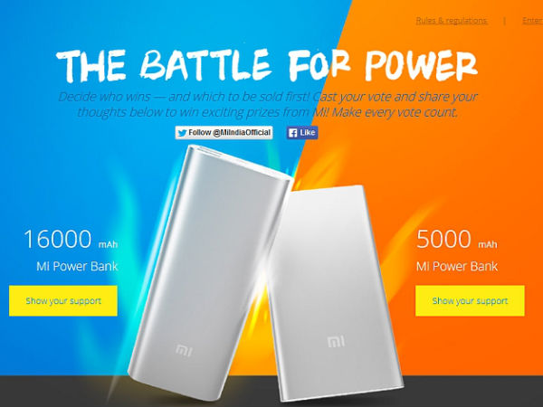 చైనా స్మార్ట్ఫోన్ల కంపెనీ షియోమీ.. 5000 ఎమ్ఏహెచ్, 16000 ఎమ్ఏహెచ్ వేరియంట్లలో రెండు శక్తవంతమైన పవర్ బ్యాంక్లను ఇండియన్ మార్కెట్లో విడుదల చేసింది. 5000ఎమ్ఏహెచ్ మై పవర్ బ్యాంక్ ధర రూ.6,999 కాగా, 1600 ఎమ్ఏహెచ్ సామర్థ్యం గల మై పవర్ బ్యాంక్ ధర రూ.1399.