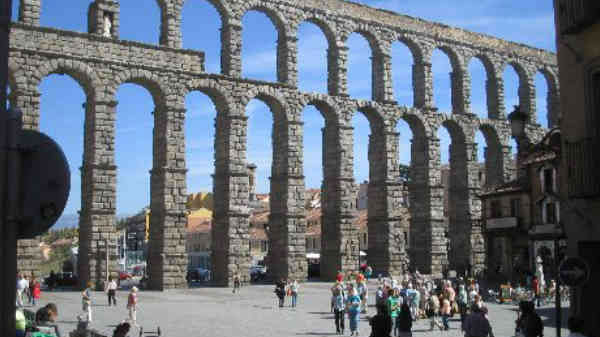 నీటి సరఫరా చేసే మార్గంలో లోతట్టు ప్రాంతాలు, లోయలు ఎదురైనప్పుడు ప్రవాహాన్ని సమరీతిగా ఉంచేందుకు ఈ ఆక్వెడక్ట్ (జలవాహమార్గం) అవసరమైంది. క్రీ.శ. 50లో దీని నిర్మాణం పూర్తయింది. 44 డబుల్ అర్చీలతో కలుపుకొని మొత్తం 167 అర్చీలున్నాయి. ఒక్కో అర్చీ 9 మీటర్ల ఎత్తుంటుంది. పొడవు 270 మీటర్లు. రోమన్ సామ్రాజ్యాధిపతి ట్రాజన్ కాలంలో 18 కిలోమీటర్ల దూరంలోని ఫ్రయో నది నుంచి సెగోవియా పట్టణానికి నీటిని తరలించడానికి దీన్ని నిర్మించారు. 24000 గ్రానైట్ బ్లాకులు వాడిన ఈ నిర్మాణంలో మోర్టార్ (ఇప్పటి సిమెంటు లాంటిది) వినియోగించకపోవడం విచిత్రం!